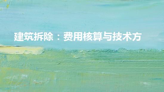 建筑拆除前的费用核算和技术方案需要在拆除前进行充分的准备和计划。主要的费用核算包括工程造价估算、材料和设备清单、劳动力和物资成本等。技术方案的制定涉及拆除方式、安全措施、污染防治、废弃物处理和环保施工等方面。
