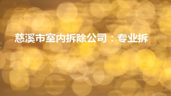 本文将对慈溪市室内拆除公司进行深入的阐述,介绍其专业的拆装、快捷的工作效率以及安全可靠的工作流程。通过本文的阅读,读者将了解到慈溪市室内拆除公司的工作特点,以及其在拆除行业中的领先地位。