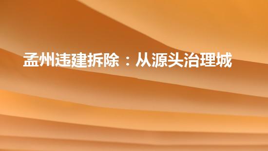 作为一名拆除行业专家,本文以孟州违建拆除为切入点,从源头治理城市规划乱象,深入探讨该问题。在介绍文章主要内容之前,先简单阐述一下背景信息。孟州是河南省安阳市下辖的一个县级市,随着城市化进程的加快,许多城市规划乱象开始浮出水面,尤其是违建现象异常严重,影响了城市的整体形象和市民的正常生活。针对此问题,本文提出要从源头治理城市规划乱象,拆除违建是必要的一步。