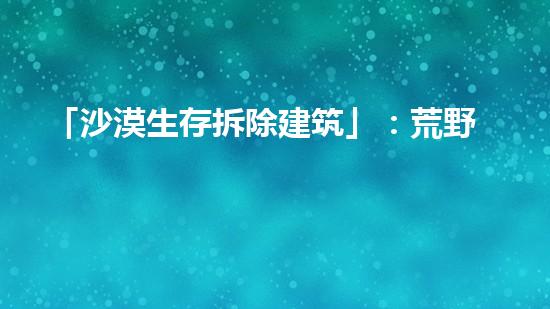 在荒野求生中,沙漠生存拆除建筑是一个必不可少的技能。因为在荒野中,拆除建筑可以提供寻找物资、取暖避寒、建造庇护所等基础需求,而在沙漠中,建筑物由于长时间的暴晒和风沙侵蚀,其结构牢固性和稳定性受到极大的挑战,使得拆除工作更加困难和危险。因此,沙漠生存拆除建筑这一技能必须被认真对待,掌握基本技能和知识,才能够生存下来。