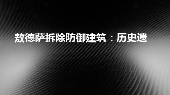敖德萨拆除防御建筑是一个复杂而困难的问题,涉及到历史文化、法律法规、环境保护等多个方面。本文旨在从拆除行业专家的角度出发,对敖德萨拆除防御建筑:历史遗留问题的治理进行详细的阐述和分析,提供专业的建议和技术支持,为解决这一问题贡献一份力量。
