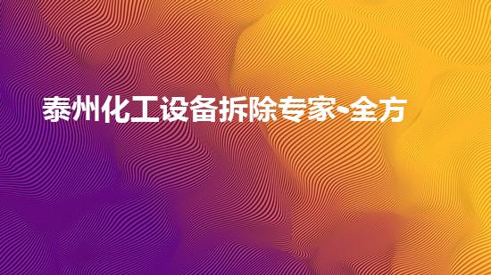 泰州化工设备拆除专家-全方位服务,保障安全可靠,是一家具备多年经验和专业技术的拆除公司。在这篇文章中,我们将从多个方面对该公司的服务进行详细介绍和阐述,以帮助读者更好地了解该公司的优势和特点。
