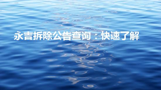 随着城市发展的不断壮大,拆除行业也越来越活跃。永吉拆除公告查询:快速了解拆迁信息,是当前拆除行业中一个重要的指南。本文将从拆除行业专家的角度,深入阐述永吉拆除公告查询的特点和优势,并通过实例和数据,展示拆除行业的发展趋势和前景。