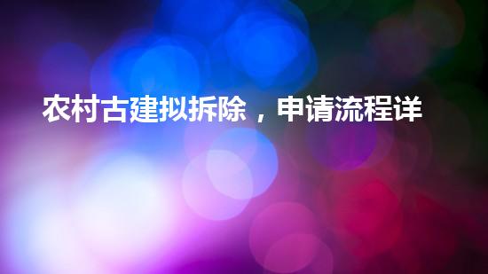 农村古建拟拆除,申请流程详解。随着城镇化的不断推进,越来越多的农村古建筑面临着拆除的命运。然而,拆除并非一项简单的工作,需要经过严格的申请流程和专业的拆除操作。本文从拆除行业专家的角度出发,对农村古建拟拆除的申请流程进行详细的阐述。