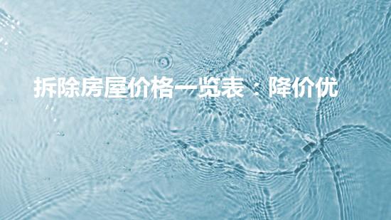 随着城市化进程的加速,拆除房屋需求不断增长。然而,对拆除房屋的价格和成本却大多不了解。本文将详细介绍拆除房屋价格一览表:降价优惠,立省成本!并对该领域的几个重要方面进行深入阐述,帮助读者理解拆除房屋的成本及相关技术,同时提高市场竞争力。