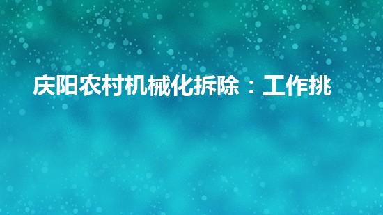 庆阳农村机械化拆除是近年来农村建筑拆除中的一个重要环节。如何有效地解决拆除过程中的工作挑战和技术突破,是一个需要我们认真思考和探索的问题。本文将从四个方面对庆阳农村机械化拆除问题进行详细专业深入的阐述,包括拆除前准备工作、设备回收和废物处理、拆除过程中的技术应用、以及环保施工的实践经验等方面,希望为读者提供一些有益的信息和参考。