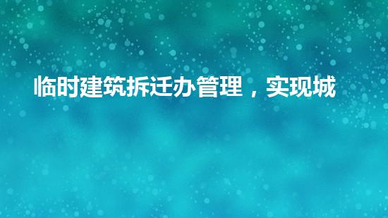 随着城市化的不断推进,临时建筑面临着日益严峻的拆迁问题。如何规范临时建筑拆迁办管理,实现城市规划,成为了当务之急。本文将从化工专家的角度,探讨临时建筑拆迁办管理的几个方面,提供专业的分析和建议。