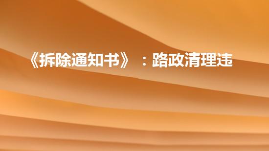 《拆除通知书》:路政清理违法建筑,强制拆除展开,是一篇关于城市管理中的拆除行业的文章,旨在介绍路政清理违法建筑,强制拆除的现状和行业专家的角色,引出读者关注城市治理和环境保护的话题。