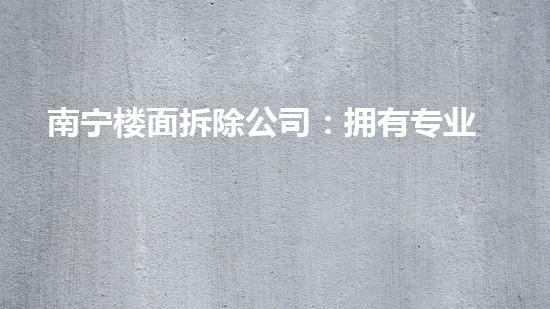 南宁楼面拆除公司是一家拥有专业技术、快速高效拆除的公司。本文将从不同方面对该公司进行详细的专业深入阐述。