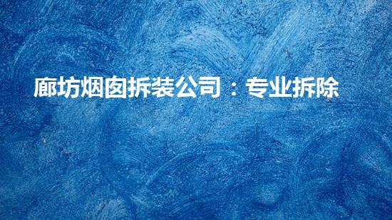 廊坊烟囱拆装公司是一家专业的烟囱拆除与安装公司,拥有多年的经验和技术,提供高效、安全的服务。本篇文章将从多个方面对此公司进行详细的阐述,包括其专业水平、技术设备、服务范围、施工流程、案例和创新技术等,力求为读者呈现全面、深入的评价。