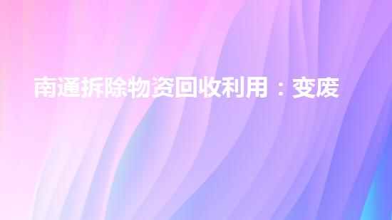在南通这座滨江临海的城市中,高楼拔地而起,城市面貌日新月异。城市更新与产业升级的步伐,各类建筑拆除、厂房改造日益增多。你是否曾思考过,那些轰然倒下的砖、混凝土、钢材,它们的最终归宿是哪里?传统的“拆了之、一埋了事”不仅占用宝贵的土地资源,更是对蕴含其中的巨大价值的浪费。如今,南通拆除回收利用正从一项环保倡议,转变为驱动城市可持续发展的实践。它不仅是将废墟转化为资源的技术过程,更是南通循环经济、建设“美丽南通”的生动缩影。本文将带深入探索这一领域的现状、价值与未来,看南通如何“废”成金,书写绿色发展的新篇章。