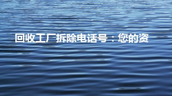 一个正式的回收工厂拆除电话号,正是您开启这段合作关系的“金钥匙”。它不但仅是几个数字,更是您与资深团队、标准化经过和安心保障的桥梁。