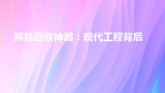拆除回收神器的出现,核心是思路的转变:把拆除”视为“逆向建造”的步。**