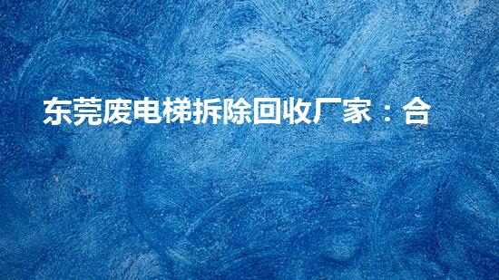 东莞废电梯拆除回收厂家:合规拆解与绿色