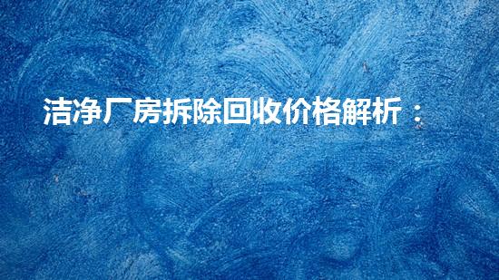 洁净厂房拆除回收价格解析:如何最大化您的价值?