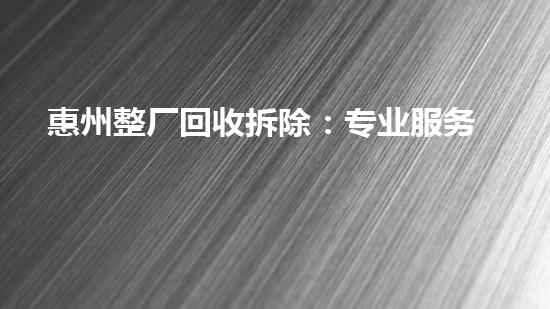 惠州整厂回收拆除:专业服务助力企业盘活与绿色转型