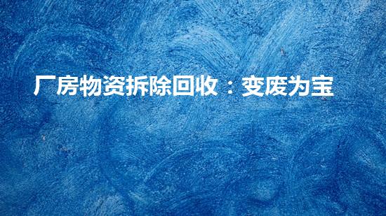 厂房物资拆除回收:变废为宝,资产盘活与绿色转型新篇章