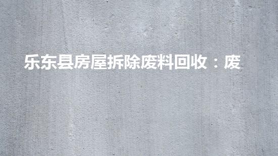 乐东县房屋拆除废料回收:废为宝,共建绿色家园
