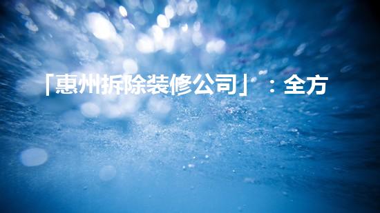 「惠州拆除装修公司」:全方位为您打造贴心拆装服务