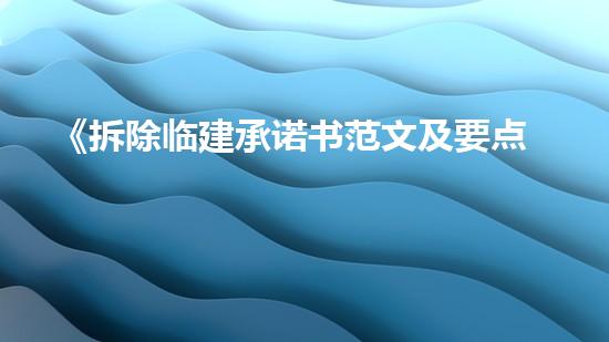 摘要:本文主要介绍《拆除临建承诺书范文及要点解析》一书,旨在向读者提供专业深入的阐述。本文通过拆除行业专家的角度,从四个方面深入阐述了这本书的内容。这四个方面分别是:《拆除临建承诺书的必要性》,《拆除...