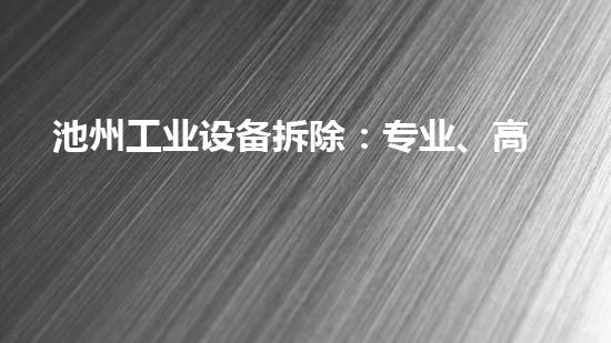 池州工业设备拆除:专业、高效、安全的拆除服务