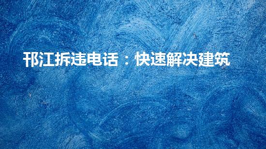 摘要:邗江拆违电话是现代化建筑拆除行业的一项重要技术,能够快速解决建筑违法问题。随着城市化进程的加速,建筑的规模和数量在不断增加,使得建筑违法问题也越来越严重。本文从拆除行业专家角度出发,从技术、设备...