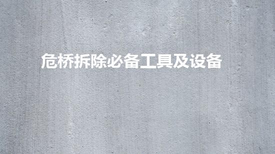 摘要:危桥拆除是一项高危的工程,必须采用适当的工具和设备来保证工人的安全和工作的高效性。本文将介绍危桥拆除必备的工具和设备,包括重型机械、切割设备、安全防护用品等。文章将全面深入地探讨每个方面的重要性...