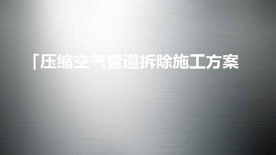 压缩空气管道拆除的施工流程可以分为提前准备、设备安装、管道拆除三个阶段。