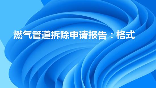 燃气管道拆除申请报告应当严格按照国家相关标准和规定制作,同时要求报告清晰、简洁、明确,可读性强,避免出现错别字或语病。报告的格式一般包括以下内容: