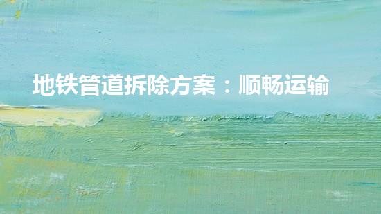地铁是现代城市交通的主要方式,其管道的拆除关乎城市交通的顺畅和市民的安全。本文重点介绍了地铁管道拆除方案:顺畅运输,安全永恒。通过引出读者的兴趣并提供背景信息,为读者明确了文章的主题和意义。