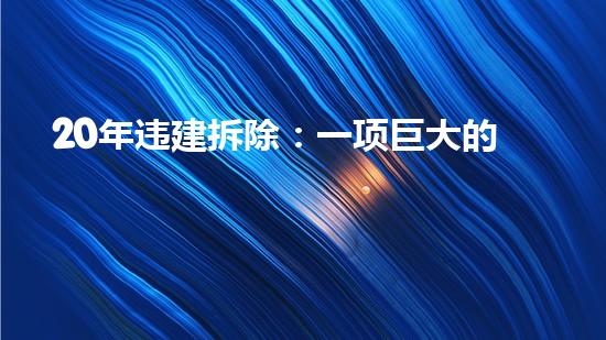 20年违建拆除需要巨大的经济成本。这些成本包括人员、设备、材料、运输和处理等方面。然而,与其长期存在带来的社会和环境损失相比,这些成本似乎是值得的。政府需要投入更多的资金和资源,以助力拆除工作的开展。