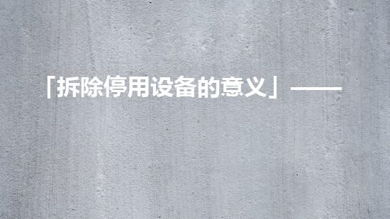 「拆除停用设备的意义」—— 设备拆除:为企业长远发展铺路的必要措施