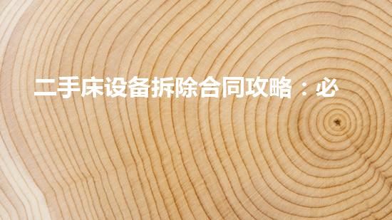 摘要:二手床设备拆除合同攻略是对于合同内容的详细分析和解读,以帮助企业或个人更好地了解合同中的条款,以减少风险和矛盾的产生。本文从多个方面介绍二手床设备拆除合同必须知道的七件事情,为广大读者提供了一份...