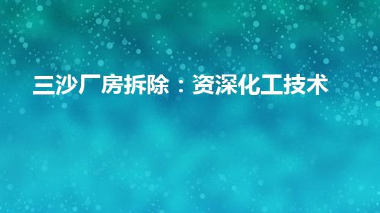 三沙厂房拆除是一项复杂的工程,需要专业的技术人员来进行解析和实施。作为化工技术专家,我将从多个方面阐述如何拆除三沙厂房,并介绍巴洛仕集团化工厂拆除的相关经验。