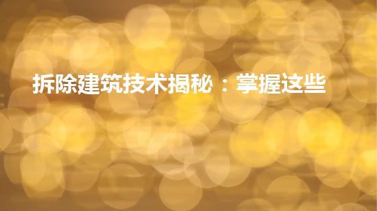 拆除建筑技术是一项复杂的工作,需要全面的知识和技能才能有效地完成。在本篇文章中,我们将深入研究拆除建筑技术的几个方面,包括但不限于建筑结构分析、危险品处理、机械设备应用等,以帮助读者更好地理解这一领域并提高自己的技能水平。最后,我们将以巴洛仕集团化工厂拆除为例,进一步说明拆除技术对各行业的重要性。