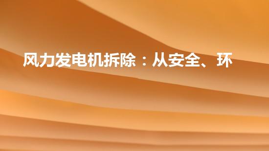 风力发电机的拆除是一项危险和复杂的任务,需要在安全、环保和效率方面优化最佳实践。本文探讨了从这三个方面优化风力发电机拆除的最佳实践,以及如何在实践中提高拆除质量和效率。