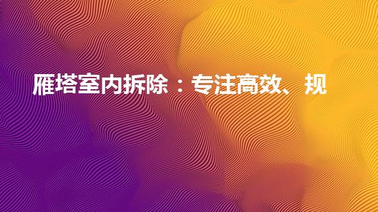 摘要:雁塔室内拆除是一个专注于高效、规范拆除服务的公司。本文将从多个方面详细介绍雁塔室内拆除的专业知识和技术,包括清洗置换、设备回收、污泥减量化、废液处理、油罐拆除、危废处理和环保施工等内容,同时涉及...