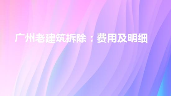 摘要:广州是一个历史悠久、文化丰富的城市,同时也拥有许多老建筑。在城市快速发展的过程中,拆除老建筑成了必要的措施。本文从拆除费用及明细出发,深入探讨广州老建筑拆除的各个方面,包括拆除前的准备工作、拆除...