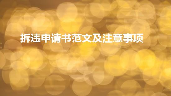 摘要:拆违申请书是一份非常重要的文件,其正确的书写至关重要。本文将为您提供一份详细的拆违申请书范文,并从工程施工、安全生产、环保要求等多个方面对注意事项做出深入的阐述,以帮助您更好地书写拆违申请书。正...