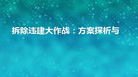 拆除违建大作战:方案探析与实践摘要:随着城市化进程的不断加速,违建现象日益严重,影响市容市貌和人们的生活质量。因此,拆除违建成为一个城市管理的重要课题。本文将从拆除行业专家的角度出发,结合巴洛仕集团化...