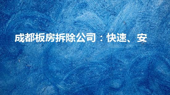 成都板房拆除公司:快速、安全、可靠