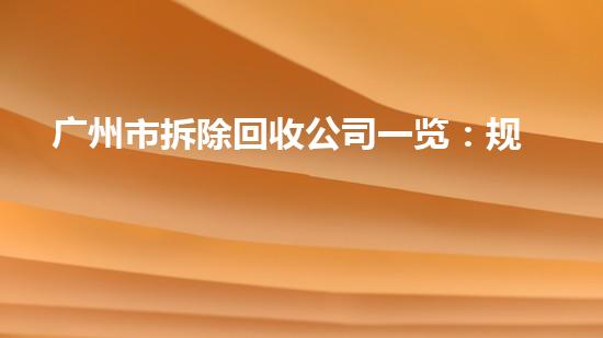广州市拆除回收公司一览:规模、收购价与租赁场地比对