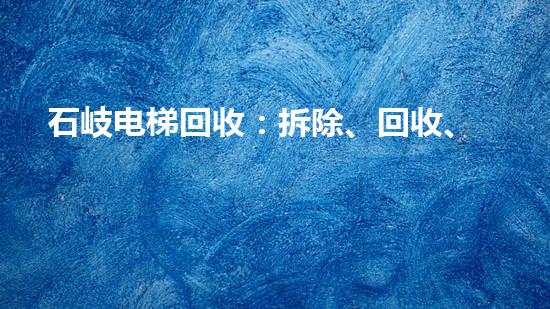 摘要:石岐电梯回收公司提供拆除、回收、维修全方位服务。文章将从拆除行业专家的角度,详细阐述石岐电梯回收公司的服务,介绍其在拆除、回收、维修等方面的专业优势和技术支持。读者将了解公司的背景和业务特点,获...
