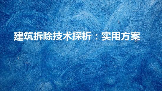 建筑拆除技术探析:实用方案与风险防控