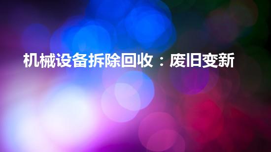 摘要:随着科技的不断发展和城市化的推进,机械设备的拆除回收已成为一个备受关注的话题。机械设备拆除回收不仅可以实现废旧物品的利用,还可达到环保再利用的效果,对于环境保护和可持续发展具有重要意义。本文将从...