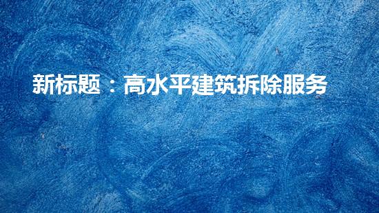摘要:本文将详细阐述高水平建筑拆除服务标准的重要性,并从专业的角度,通过探讨拆除前清洗置换、设备回收、污泥减量化、废液处理、油罐拆除、危废处理、环保施工等方面,深入思考如何满足高水平建筑拆除的服务标准...