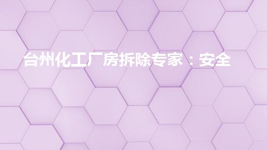 摘要:台州化工厂的拆除,需要专业的化工技术支持。以安全高效和拆毁完美为中心,化工专家将为您呈现最佳实践。在本文中,我们将向您介绍人们对台州化工厂房拆除专家的评价,以及拆除过程中各项重点工作的解决方案。...