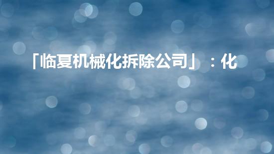 「临夏机械化拆除公司」:化工专家的机械化拆除新方案