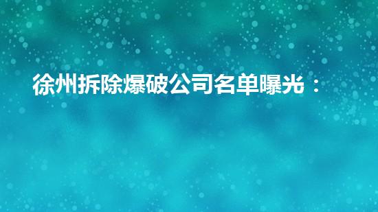 徐州拆除爆破公司名单曝光:多家企业将被拆除!