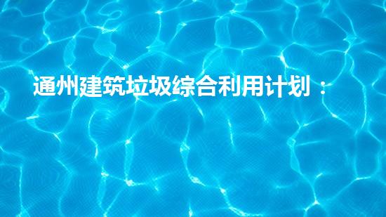 通州建筑垃圾综合利用计划:解决大量拆除建筑废弃物的可持续问题